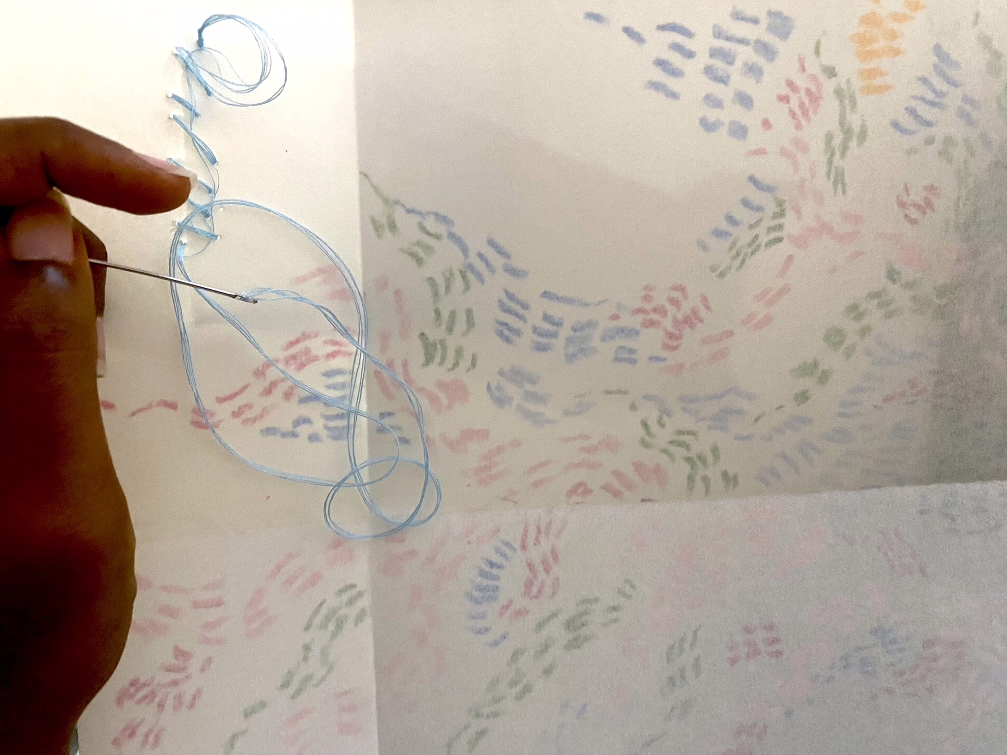 The process is a mirror of history: roots once fragmented and forgotten resurfacing, now gathered and documented. These torn fragments are collaged and threaded together like stories stitched through generations.