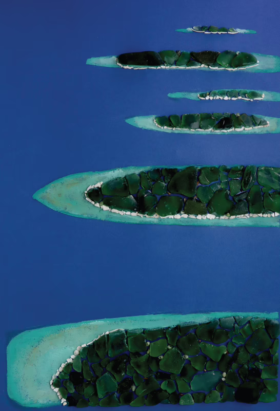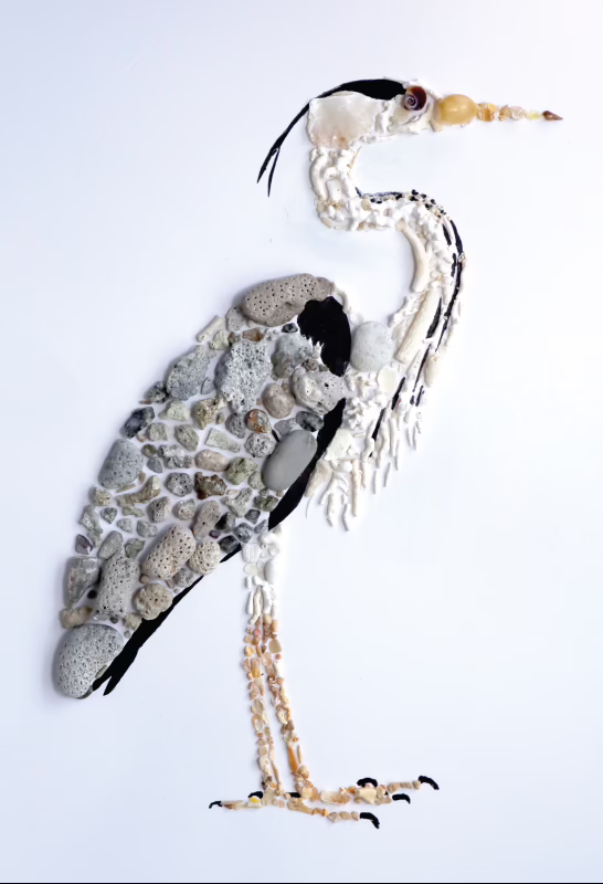 Emaz “Emma” Abdul Shakoor is a homegrown, self-taught mixed-media artist based in Malé City. Her artistic journey began not with formal training, but with a simple, years-long habit: collecting miscellanea—sea glass, coral sand, and shells—from the Maldivian seaside. In late 2022, inspired by online shell art, Emma found the confidence to translate these “gifts of the ocean” into intricate compositions. Her early work evolved from abstract shapes and geometric patterns to detailed local sceneries, eventually focusing on Maldivian flora and fauna. Emma’s meticulous process involves arranging these natural elements onto paper, creating detailed silhouettes of marine life and land creatures. Driven by a deeper appreciation for slowing down and appreciating life, her art is a powerful reminder that wonder is found in the overlooked, fragile beauty of the everyday.