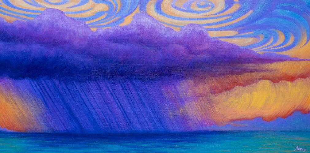 Aima Musthafa (b. 1990) is a Maldivian artist and storyteller whose work is rooted in colours and emotions. She draws inspiration from the subtle movements of island life in the shifting of shadows, the ripple of water, and the play of light across changing skies. Using vibrant palettes of purples, turquoises, and warm oranges, she captures fleeting impressions that invite viewers to pause and rediscover beauty in every day. Stories from her grandmother often make Aima reflect on how life in the Maldives was just a few decades ago, and how quickly it is changing. Seeing how human activity and climate change affect her islands makes her more mindful of what is fragile, and more grateful for what remains. Her practice spans paintings, murals, illustration, and digital work, carried by a spirit of experimentation. For Aima, making art is a way of grounding herself. Learning how to be, while paying closer attention to the beauty and cycles that connect people, culture, and environment.